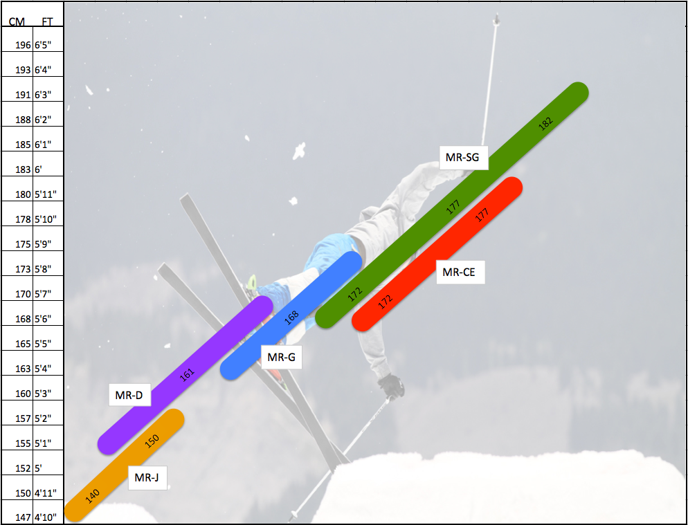Simple. ID one USA has brought you a lineup that should fit every Mogul Skier’s requirements. Start your process by selecting the ski that matches your height. In most cases, this is all you need to do, especially if you fall in a 140cm to a 168cm. If your ski size falls in-between a 172cm and a 182cm, then your additional choice is whether you want a Cracked Edge or a Seamless Edge. If you are a bigger, stronger skier then the MR-SG in 172cm, 177cm or 182cm may be right for you. If you are a lighter smaller skier, then the MR-CE 172cm or the MR-CE 177cm would be your choice.